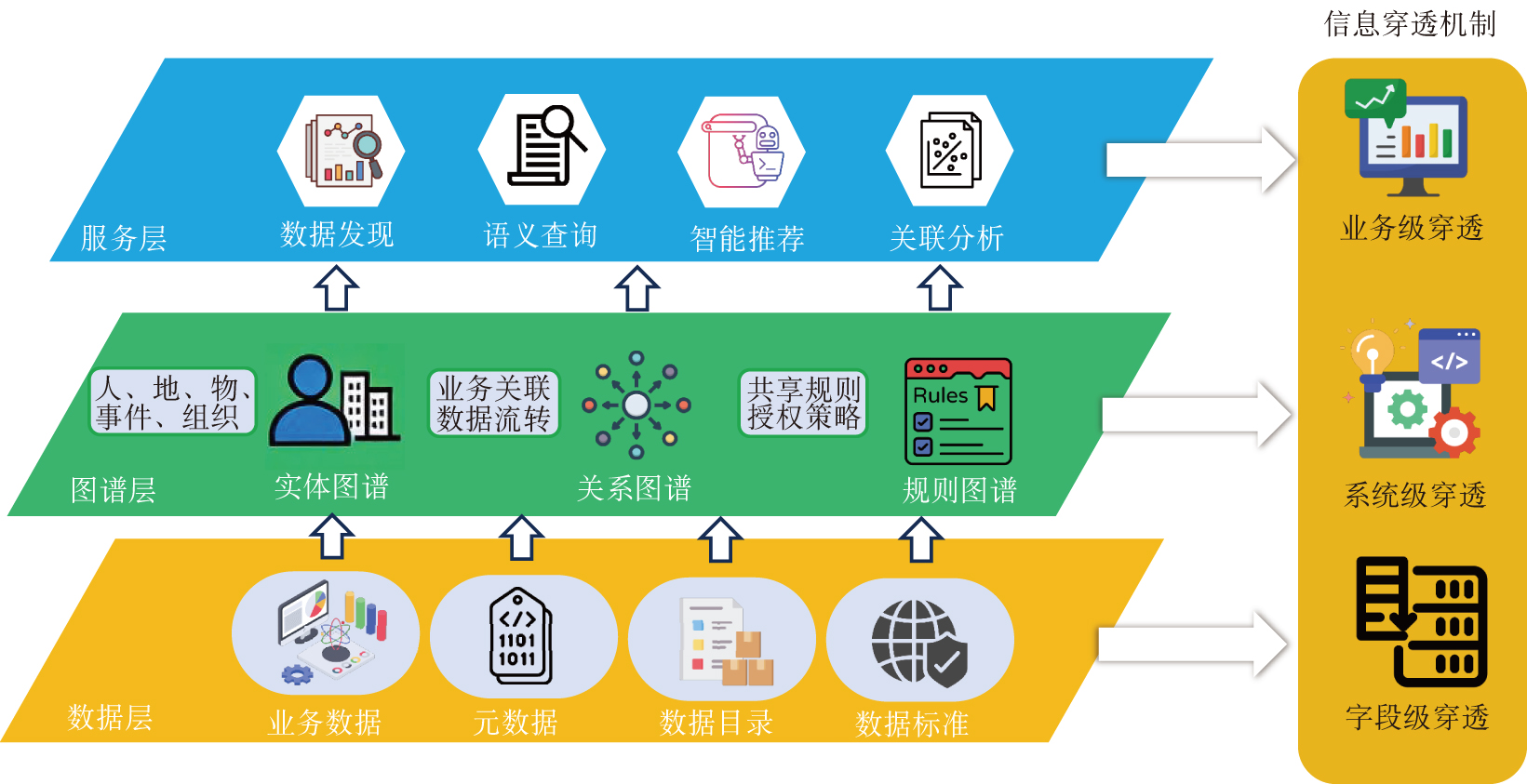 随着数字政府建设的深入推进,政务数据已成为驱动国家治理能力现代化的核心要素。鉴于当前政务数据共享仍普遍面临“数据孤岛”、语义异构等挑战,严重制约了数据价值的有效释放,因此引入知识图谱技术,提出一种基于图谱信息穿透的政务数据共享新模式,以破解这些难题。该模式通过构建涵盖字段级、系统级和业务级的多层次信息穿透体系,旨在打破数据壁垒,实现政务数据的深度关联与语义互通。基于图谱信息穿透的“三维一体”机制体系,涵盖图谱构建与演化、穿透式服务与协同、基于图谱的动态安全与审计3个维度,实现了从“数据管理”到“知识运营”的范式转变,可保障新模式顺利落地实施。