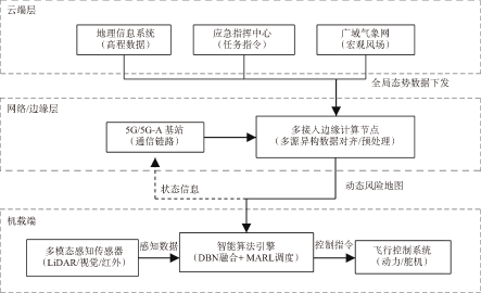 针对低空应急救援场景中环境复杂多变、多机协同调度困难及动态风险规避能力不足的问题,提出了一种融合多维态势感知的无人机集群智能协同管控技术。通过构建基于动态贝叶斯网络的异构信息融合模型,将机载传感数据与外部时空态势映射为三维动态风险地图。在此基础上,设计了风险耦合的多智能体强化学习调度策略与自适应路径规划方法,将量化风险值实时引入决策与规划闭环。外场试验结果表明,该方法能够显著提升对动态风险的感知精度,能够在复杂动态环境下有效提高无人机集群的任务成功率,缩短平均避障响应时间与任务完成总耗时,降低平均风险暴露时长,为构建安全高效的低空应急救援体系提供技术支撑。