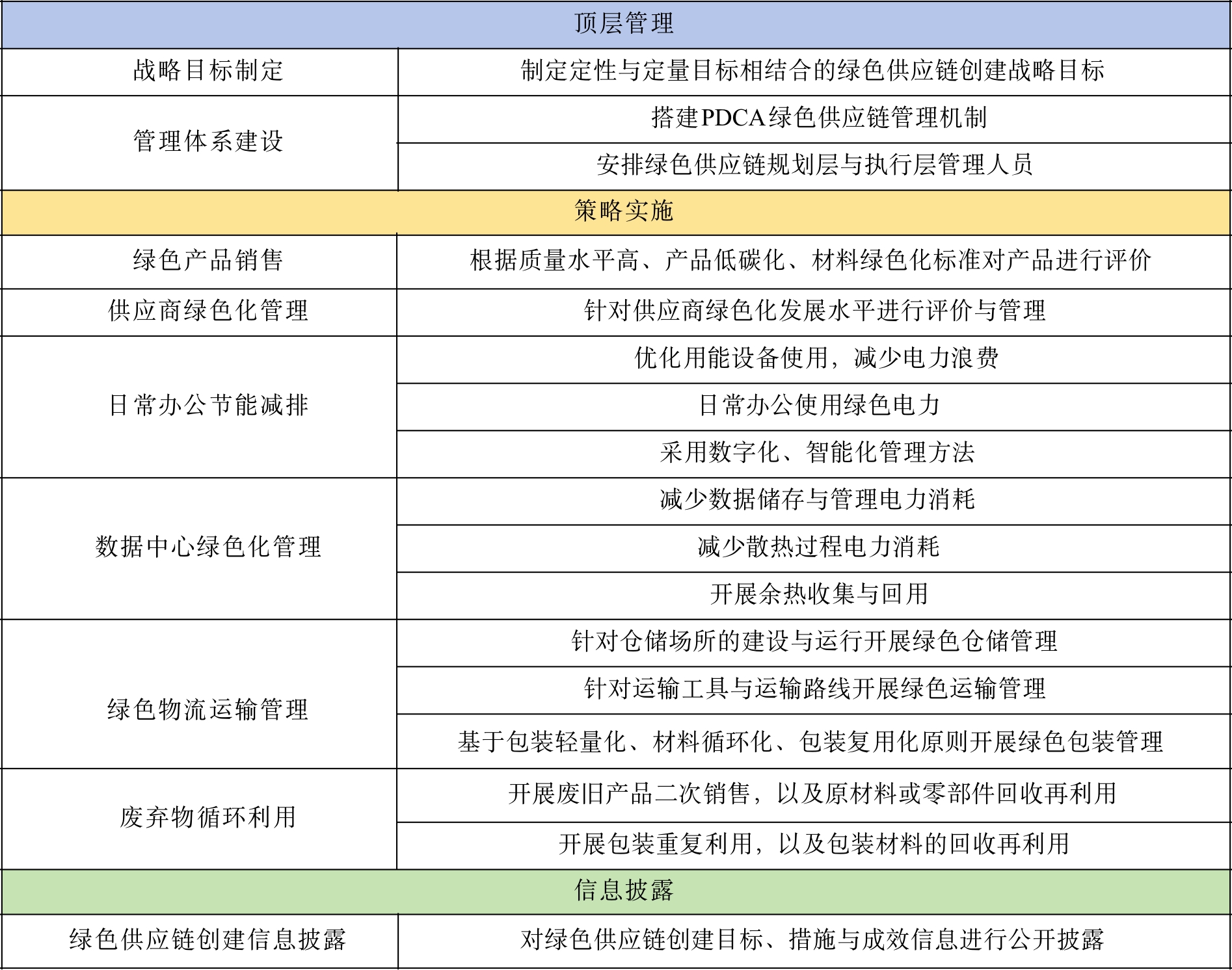 创建绿色供应链是电商平台类企业实现绿色化转型的重要手段。通过对多家不同种类的电商平台类企业的绿色供应链创建做法进行案例研究,形成了以顶层管理、策略实施与信息披露为主要框架的电商平台类企业绿色供应链创建路径与方法论,并对各环节的创建策略进行了深入分析,为电商平台类企业创建绿色供应链提供了高效的方法论指导。